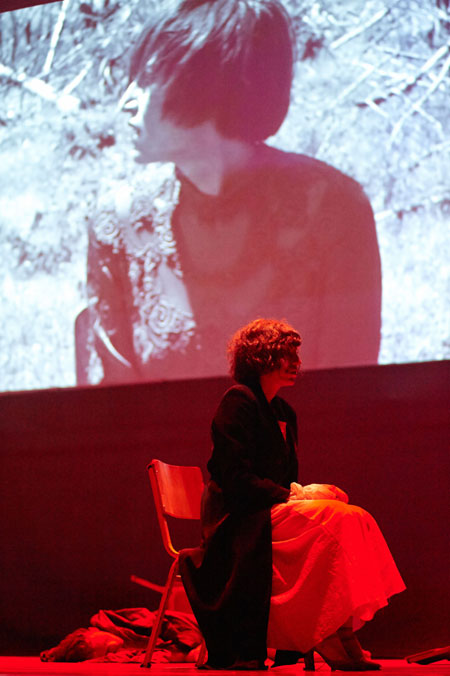 Στην παράσταση, η κινηματογραφική ταινία υπήρξε ως βασικός αφηγητής, ενώ ο Χορός τριών γυναικών, η ίδια η «Α», καθώς και οι μουσικοί οι οποίοι διευθύνονταν ζωντανά από το συνθέτη, συνδιαλέγονταν μαζί της επάνω στη σκηνή. Με αυτόν τον τρόπο, ο κινηματογράφος υπηρέτησε άρτια το φυσικό του γονιό, την κλασική τραγωδία, έξω από το χώρο “ασφαλείας του”, σε ένα θεατρικό χώρο.