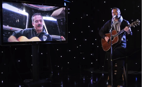 Πριν από λίγες εβδομάδες ο κόσμος είχε θαυμάσει τις εκπληκτικές φωτογραφίες του αστροναύτη Chris Hadfield μέσω Twitter από το διάστημα. Και τώρα, ο Καναδός κοσμοναύτης είναι και πάλι έτοιμος για άλλο ένα «αστρονομικό πρότζεκτ». Αυτή τη φορά, καταγράφεται σε απευθείας σύνδεση με το διάστημα ένα μοναδικό ντουέτο με τον ίδιο και το καναδικό alternative rock συγκρότημα των Barenaked Ladies. Ο Ed Robertson μέλος του συγκροτήματος αναφέρει στο CBC News τα εξής: