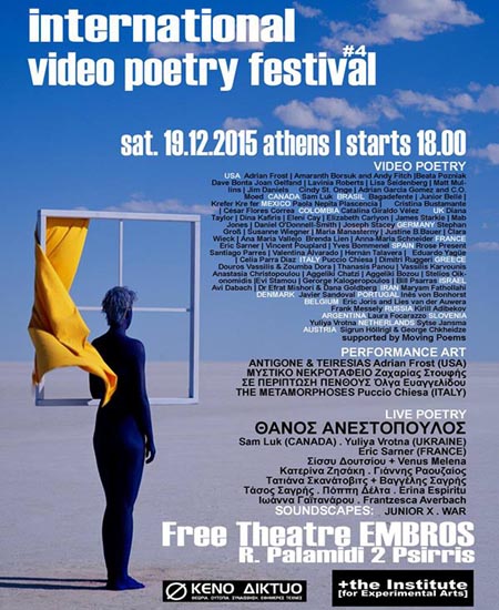The Institute for Experimental Arts and Void Network create a meeting point for more than 90 artists from 25 countries presenting for 4th year at the Free Self organized Theatre Embros an audiovisual international festival for contemporary poetry, video art, music and performances
