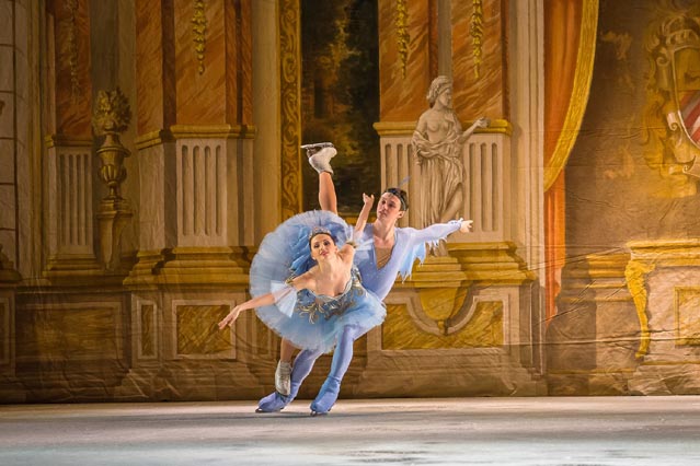 «H Ωραία κοιμωμένη ακολουθεί πιστά τη βερσιόν του 1890, με όλους τους χορευτές πάνω σε παγοπέδιλα να εκτελούν πιρουέτες και ζετέ, ακριβώς όπως θα έκαναν και με τα παπουτσάκια του μπαλέτου. Τα θεατρικά κοστούμια που φορούν, αρκετά πιο βαριά από τις συνηθισμένες στολές των παγοδρόμων, δεν φαίνεται να τους εμποδίζουν στο παραμικρό».