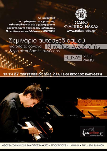 Νικόλας Αναδολής Σεμινάριο & Live - Αθήνα 27/9/2016 7:00:00 μμ