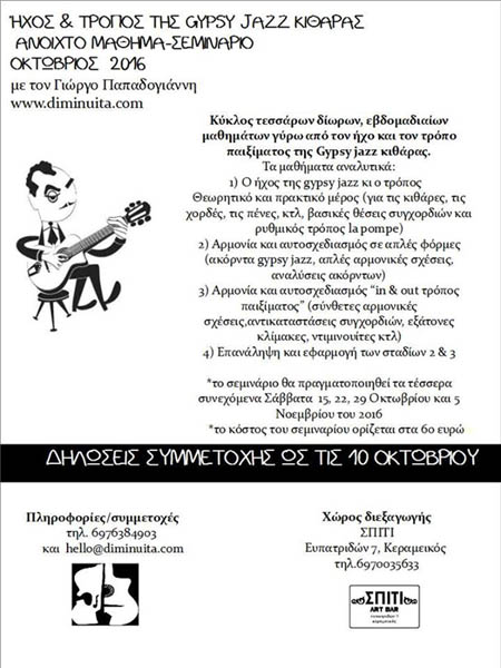 Ήχος & τρόπος της Gypsy Jazz Κιθάρας ΣΕΜΙΝΑΡΙΟ - Αθήνα 15/10/2016 7:00:00 μμ