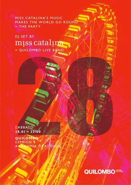 Το πρώτο party της φετινής χρονιάς δε θα μπορούσε παρά να μας ανοίξει ορίζοντες και όρεξη για μακρινά και ωραία μουσικά ταξίδια! Το Σάββατο 28 Ιανουαρίου υποδεχόμαστε τη Miss Catalina,τη sound selector parexcellence που μας συστήνεται ως music traveller και είναι αυτό ακριβώς!