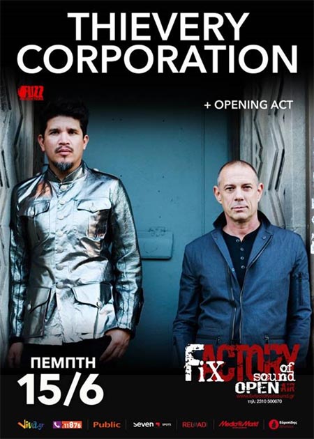 Οι Αμερικανοί Thievery Corporation, ένα από τα δημοφιλέστερα σχήματα της παγκόσμιας downtempo / dub / trip hop / electronica σκηνής, επιστρέφουν στη Θεσσαλονίκη! Το σχήμα των Rob Garza και Eric Hilton θα βρεθεί για μία μοναδική συναυλία την Πέμπτη 15 Ιουνίου στο Fix Factory of Sound Open Air!