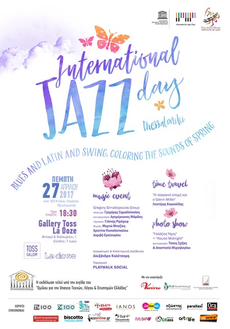 Η Θεσσαλονίκη γιορτάζει την Παγκόσμια Ημέρα Τζαζ δίνοντας τον τόνο σε μια ζωντανή ανοιξιάτικη βραδιά με μουσική και φωνές που θα ξυπνήσουν αισθήσεις και αναμνήσεις, με φωτογραφίες που κάποτε αιχμαλώτισαν στιγμές έκφρασης μουσικών Jazz επί σκηνής, και ένα απολαυστικό “time travel” στην κλασσική εποχή της Jazz, με σημείο εκκίνησης τον πολυχώρο Gallery Toss/La Doze, Βηλαρά και Βαλαωρίτου 1, την Πέμπτη 27 Απριλίου, και ώρα 18:30 (*αντί 30 Απριλίου, λόγω τριημέρου και αργίας Πρωτομαγιάς).
