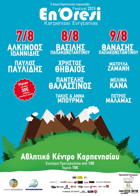 Το «En’Oresi» festival θα διεξαχθεί φέτος στις 7, 8 & 9 Αυγούστου στο Αθλητικό Κέντρο Καρπενησίου. Πλέον μετρά 5 επιτυχημένα χρόνια ζωής αφού ήδη από το ξεκίνημά του, το 2011, έγινε θεσμός στα συναυλιακά δρώμενα της Στερεάς Ελλάδας.