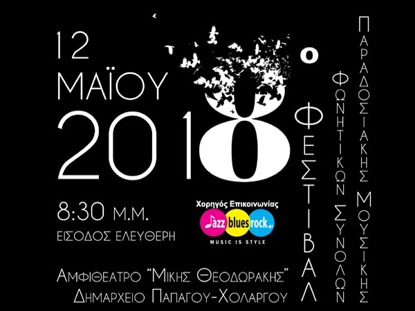 Το Ερευνητικό Κέντρο Ελληνικού Τραγουδήματος [ΕΡ.Κ.Ε.Τ.] ανακοινώνει τη διοργάνωση του 8ουΦεστιβάλ Φωνητικών Συνόλων Ελληνικής Παραδοσιακής & Λαϊκής Μουσικής. Το Φεστιβάλ θα διεξαχθεί το Σάββατο 12 Μαΐου 2018, και ώρα 8:30 μ.μ., στο Αμφιθέατρο «Μίκης Θεοδωράκης» στο Δημαρχείο Παπάγου-Χολαργού, επί της Λεωφόρου Περικλέους 55, 15561 στο Χολαργό.