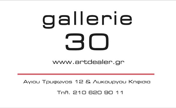 Η Gallerie 30 σας περιμένει τον μήνα Δεκέμβριο στην νέα έδρα της, Αγίου Τρύφωνος 12& Λυκούργου - Κηφισιά παρουσιάζοντας μέρος από την ιδιωτική συλλογή της. Έργα τέχνης και χαρακτικά στις καλύτερες τιμές της αγοράς.