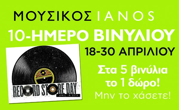 - Για την ημέρα αυτή, ο ΙΑΝΟS χαρίζει το 1 βινύλιο, με αγορές 5 βινυλίων