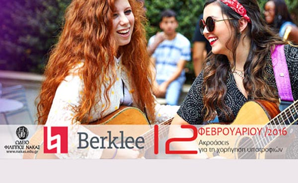 Οι καθιερωμένες ετήσιες ακροάσεις για τη χορήγηση υποτροφιών φοίτησης στο Berklee College of Music θα διεξαχθούν την Παρασκευή 12 Φεβρουαρίου 2016 και θα είναι πλαισιωμένες από πολύ ενδιαφέρουσες παράλληλες εκδηλώσεις, όλες με ελεύθερη είσοδο για το κοινό.