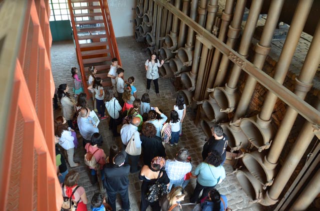 Ταυτόχρονα, έρχεται σε επαφή με τις μυρωδιές του παλαιού εργοστασίου, ακούει τις ιστορίες των εργαζομένων μέσα από τα κορνούτα και αγγιζει τις μηχανές που μέχρι πρόσφατα λειτουργούσαν και γέμιζαν με ενέργεια όλη την πόλη.