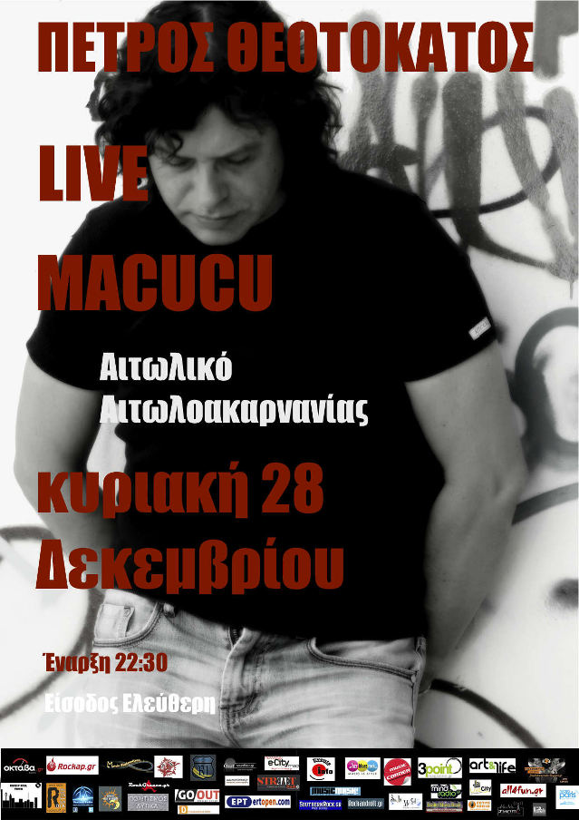 Λίγες μέρες πριν το τέλος της χρονιάς, ο Πέτρος Θεοτοκάτος θα βρεθεί με τη μπάντα του στη Λευκάδα, την Κεφαλονιά και το Αιτωλικό. Συγκεκριμένα, θα εμφανιστεί στο MILOS BEACH στον Aγ. Ιωάννη Λευκάδας την Παρασκευή 26 Δεκεμβρίου, στη BODEGA στο Αργοστόλι Κεφαλονιάς το Σάββατο 27 Δεκεμβρίου και στο MACUCU Café Bar στο Αιτωλικό Αιτωλ/νίας την Κυριακή 28 Δεκεμβρίου.