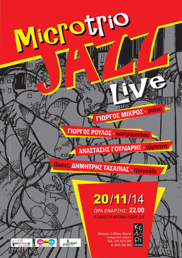 Την Πέμπτη 20 Νοεμβρίου 2014 στις 22:00, στο "Κελάρι" του ATHENAEUM θα απολαύσουμε τους Micro Trio, με καλεσμένο τους, τον Δημήτρη Τάσαινα, έναν από τους σπουδαιότερους τραγουδιστές της ελληνικής Jazz σκηνής!