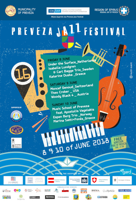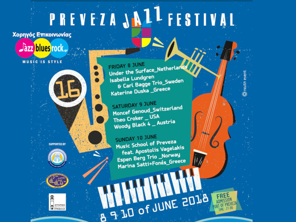 To 16ο Preveza Jazz Festival έρχεται για τρεις μοναδικές βραδιές στις 8, 9 και 10 Ιουνίου 2018 στο λιμάνι της Πρέβεζας.