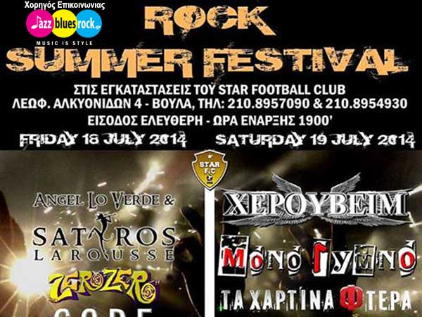 Παρασκευή 18 και Σάββατο 19 Ιουλίου 2014, το 1ο ROCK SUMMER FESTIVAL ελληνικών συγκροτημάτων στη Βούλα στις εγκαταστάσεις του Star Football Club (Λεωφ. Αλκυονίδων 4).