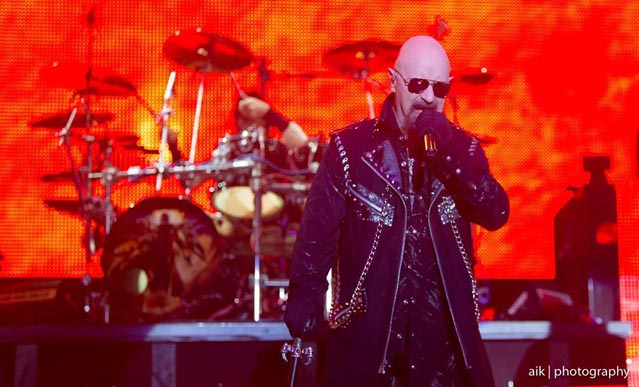 Αισίως είναι η 5η φορά που τους βλέπω. Και εάν το 2011 ήταν η καλύτερη τους εμφάνιση λόγω μεγαλύτερου set list και μεγαλύτερης σκηνής, το ίδιο καλά περάσαμε και τώρα μαζί τους. Καθώς είναι στα πλαίσια της περιοδείας του Redeemer Of Souls ξεκίνημα λοιπόν με το "Dragonaut” από την τελευταία τους κυκλοφορία για να συνεχίσουν με κάτι από τα παλιά με το “Metal Gods”. H πρώτη μεγάλη στιγμή ήρθε με το “Victim Of Changes”. Το κλασσικό intro από τους Tipton/Faulkner και όλοι περιμέναμε τον «καράφλα» να ακούσουμε την τσιρίδα του. Και ναι, για μια ακόμη φόρα , την έβγαλε(!). Μπορεί να χρειάζεται σε κάθε τραγούδι, να πηγαίνει backstage για ανάσες, μπορεί να κουράζεται και να μην είναι τόσο ενεργητικός, αλλά η φωνή του, για 63 χρονών, είναι εδώ και ακόμα και τώρα μας θυμίζει τον Halford που όλοι ξέρουμε. Από εκεί και πέρα ήταν μια «κλασσική» εμφάνιση των Judas Priest. Ο γνωστός χαμός στο "Breaking The Law" , η μοτοσυκλέτα στο "Hell Bent For Leather", "You’ve Got Another Thing Coming" που το τραβάνε πάντα λίγο παραπάνω, και με τον να μας ρωτάει ποιο τραγούδι θέλουμε να ακούσουμε. Τι άλλο; Painkiller λοιπόν, και κλείσιμο με το “Living After Midnight". Τι μας έλλειψε; Προσωπικά μετά από 5 φορές δεν νομίζω ότι μου έλλειψε κάτι. Ναι, θα μπορούσαν να είχαν τουλάχιστον 5-6 διαφορετικούς ύμνους τους, αλλά στην συγκεκριμένη περιοδεία, αυτά παίζουν-αυτά ακούσαμε. Στην ίδια ηλικία είναι και άλλοι τραγουδιστές με τον Rob Halford. Ονόματα δεν λέω. Ας ρωτήσουν τον Halford πως τα καταφέρνει ακόμα για να πάρουν μερικά μαθήματα…