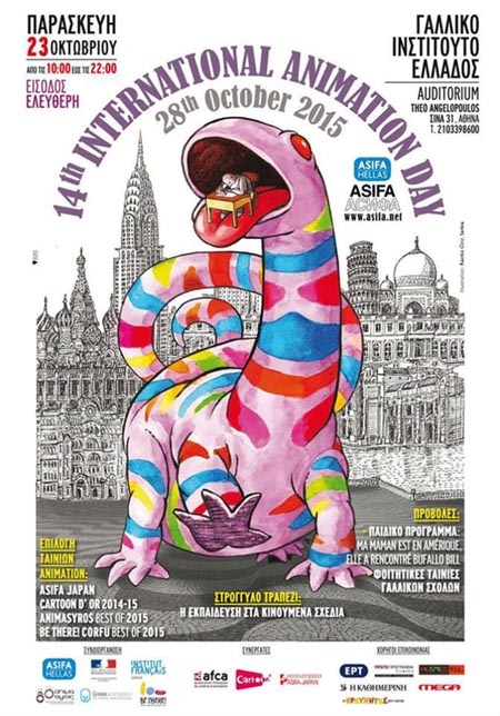 Η ΑΣΙΦΑ ΕΛΛΑΣ, ελληνικό παράρτημα της Ένωσης δημιουργών κινουμένων σχεδίων ASIFA (Association Internationale du Film d’Animation) συνδιοργανώνει με τα ελληνικά φεστιβάλ κινουμένων σχεδίων Animasyros και Be There! Corfu Animation Festival αλλά και το Γαλλικό Ινστιτούτο Ελλάδος, τη γιορτή για την Παγκόσμια Ημέρα Κινουμένων Σχεδίων, αύριο, Παρασκευή 23 Οκτωβρίου 2015.