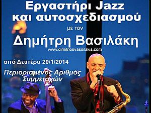 Εργαστήρι Jazz και αυτοσχεδιασμού με τον διεθνούς φήμης σαξοφωνίστα και συνθέτη Δημήτρη Βασιλάκη...