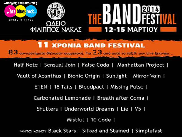 Από τις 12 έως τις 15 Μαρτίου τα live του Band Festival, στο Ωδείο Φίλιππος Νάκας, Ιπποκράτους 41, Αθήνα, με είσοδο ελεύθερη για το κοινό.