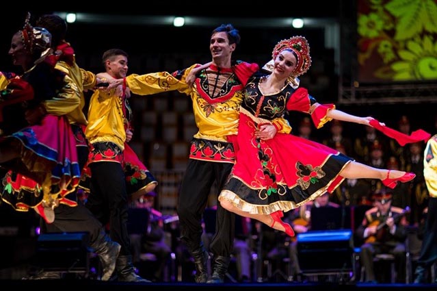 130 χορωδοί, χορευτές και μουσικοί επί σκηνής ξεσήκωσαν με τον έντονο ρυθμό, το δυνατό παλμό, μετέφεραν το μεγαλείο της ρωσικής ψυχής και συγκίνησαν μέχρι και τον τελευταίο θεατή όταν τραγούδησαν «Όταν σφίγγουν το χέρι» των Μίκη Θεοδωράκη – Γιάννη Ρίτσου.