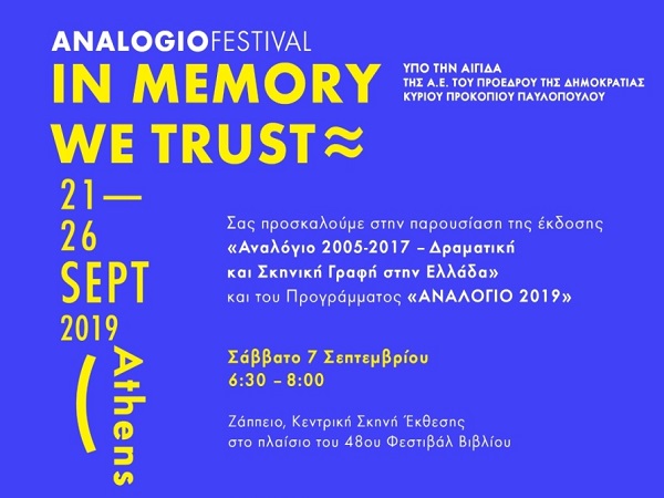 «ΦΕΣΤΙΒΑΛ ΑΝΑΛΟΓΙΟ 2019» «In Memory we Trust», Αθήνα 21-26 Σεπτεμβρίου.