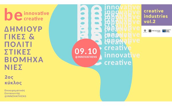 09.10 | Be innovative, Be creative vol.2 | Ημερίδα για τις πολιτισμικές βιομηχανίες, με αφορμή την έναρξη του 6ου κύκλου του Επιχειρηματικού Επιταχυντή Creative Industries vol.2 | INNOVATHENS