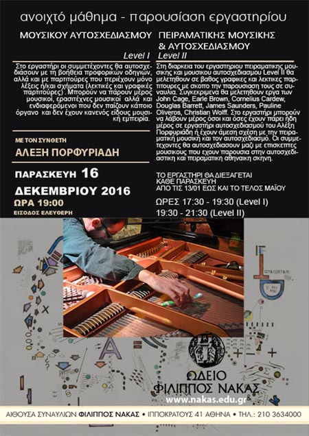 Εργαστήρι μουσικού αυτοσχεδιασμού Level I - Αθήνα 6/12/2016 7:00:00 μμ