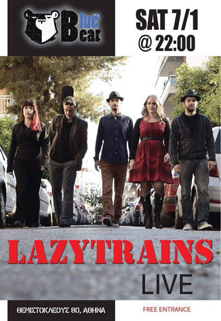 Oι Lazytrains υποδέχονται την νέα χρόνια με ένα rock n roll, blues, swing, garage party στο Blue Bear, ένα νέο χώρο στο κέντρο της πόλης, εκεί που όλα μπορούν να συμβούν και καινούργιοι ήχοι σε συντροφεύουν σε κάθε γωνία.