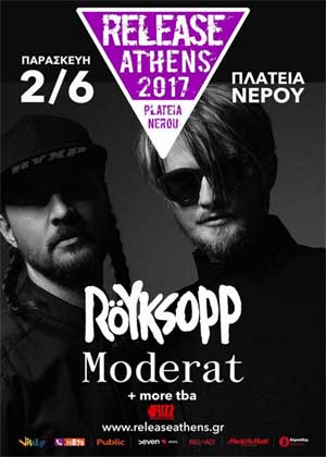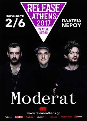 Για τους Moderat μάλλον δεν χρειάζεται να πούμε πολλά πράγματα, ιδίως μετά την εμφάνισή τους στην Αθήνα, τον Νοέμβριο του 2016. Οι περισσότεροι από 3.000 άνθρωποι που έδωσαν το “παρών” εκείνο το βράδυ στο Gazi Music Hall πρέπει να κατάλαβαν τον λόγο που ανάγκασε τον Τύπο να τους προσδώσει τον χαρακτηρισμό του “Top Electronic Act” του πλανήτη μέσα στην περασμένη χρονιά. Το εντυπωσιακό οπτικοακουστικό show που μας προσέφεραν, όπου ήχος και φως έκαναν τους πάντες να λικνίζονται στους ρυθμούς τους, αναμένεται να πάρει εκρηκτικές διαστάσεις στην Πλατεία Νερού και το Release Athens 2017!