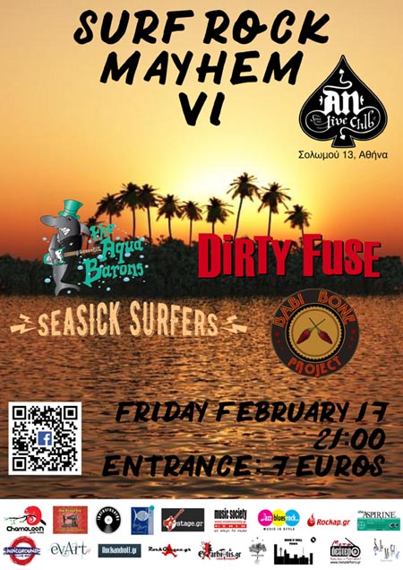 Το φεστιβάλ-πάρτυ της ελληνικής Surf σκηνής φιλοξενείται για μια φορά ακόμα στο ιστορικό AN club 'official' (Σολωμού 13, Αθήνα 106 82 Τηλέφωνο: 21 0330 5056) την Παρασκευή 17 Φεβρουαρίου.