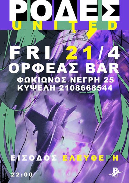 Οι Ρόδες united επιστρέφουν στον Ορφέα bar cafe restaurant (Φωκίωνος Νέγρη 25, Κυψέλη) , την Παρασκευή 21 Απριλίου στις 22:00 , για μία βραδιά με ελεύθερη είσοδο, όπου θα παίξουν ζωντανά τα καινούρια, τα παλιά, τα τυχαία και τα άντεργκράουντ κλάσικς.