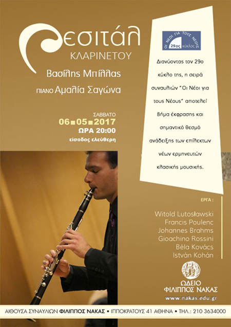 Βασίλης Μπίλλας Ρεσιτάλ κλαρινέτου - Αθήνα 6/5/2017 8:30:00 μμ