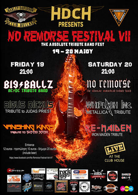 Κυρίες και Κύριοι..... λίγες ημέρες πριν μπει το καλοκαίρι και συγκεκριμένα 19 και 20 Μαίου το No Remorse Festival ανοίγει τις πόρτες του στο Harley-Davidson Club Hellas στο Περιστέρι και σας παρουσιάζει τις καλύτερες tribute bands σ' ένα διήμερο αφιερωμένο στα μεγαλύτερα ονόματα της rock και metal μουσικής.