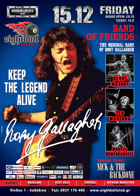 την Παρασκευή 15 Δεκεμβρίου στο 8ball και το Σάββατο 16 Δεκεμβρίου στο Κύτταρο φέρνουν ξανά, εδώ, στον ευρωπαικό Νότο τους καταξιωμένους μουσικούς και συνοδοιπόρους του Rory, τους πρεσβευτές της μουσικής του διεθνώς, και αγαπημένους του ελληνικού κοινού: