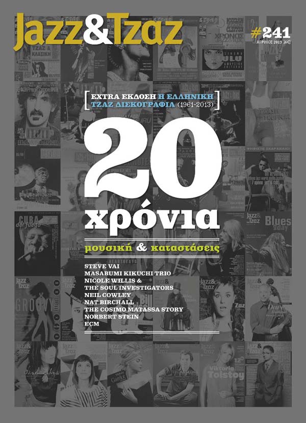 Το περιοδικό Jazz & Tζαζ εορτάζοντας τα 20 χρόνια συνεχούς κυκλοφορίας του (4/1993-4/2013) προσφέρει στο αναγνωστικό κοινό την Ελληνική Τζαζ Δισκογραφία. Καταγράφεται δηλαδή για πρώτη φορά σ’ αυτή την έκταση το σύνολο των άλμπουμ (LP και CD) των ελλήνων δημιουργών και των συγκροτημάτων που κυκλοφόρησαν στο διάστημα 1961-2013, και που είναι, θεωρούνται ή μπορεί να θεωρηθούν με κάποιο τρόπο τζαζ. Τα κείμενα που προηγούνται της δισκογραφίας και που αφορούν σε τέσσερις μεγάλες χρονικές περιόδους (σχεδόν μία εκατονταετία!), δίνουν την ευκαιρία στον αναγνώστη μιας σύντομης αλλά μεστής καταγραφής των παράλληλων και οπωσδήποτε ουσιαστικών γεγονότων, που βοήθησαν στην ταυτοποίηση και περαιτέρω στην αναγνώριση της σκηνής. Τα δύο παραρτήματα με τους δίσκους 45 στροφών και τους «άλλους» δίσκους ελληνικού ενδιαφέροντος ολοκληρώνουν την εργασία.