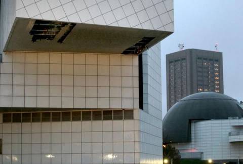 Το εμβληματικό κτήριο του Rock and Roll Hall of Fame υπέστη ζημιές από το πέρασμα του τυφώνα Sandy χάνοντας κομμάτια από το άνω επίπεδο του κτηρίου και πληγώνοντας επίσης σε αρκετά σημεία όπως θα δούμε και παρακάτω στο βίντεο από τα τηλεοπτικό δίκτυο Fox 8 του Cleveland. Η ταχύτητα των ανέμων έφτασε τα 68mph παρόλα αυτά ο δημοσιογράφος Kenny Crumpton αναφέρει ότι η ζημιές είναι επιφανειακές αλλά υπάρχει ανησυχία για το επίπεδο τον υδάτων στη γύρω περιοχή μιας και το κτίριο βρίσκεται ακριβώς στη λίμνη του Erie την τέταρτη μεγαλύτερη από τις επονομαζόμενες Great Lakes της βόρειας Αμερική η οποία συνορεύει και με τη Νέα Υόρκη. Δείτε εδώ το βίντεο με τις ζημιές.
