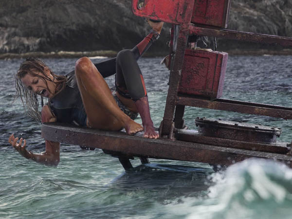 Η Νάνσι (Μπλέικ Λάιβλι) σερφάρει μόνη της σε μια απομονωμένη παραλία, όταν δέχεται επίθεση από ένα μεγάλο λευκό καρχαρία και σώζεται πέφτοντας πάνω σε ένα μικρό βράχο, λίγα μέτρα από την ακτή. Αν και απέχει μόλις