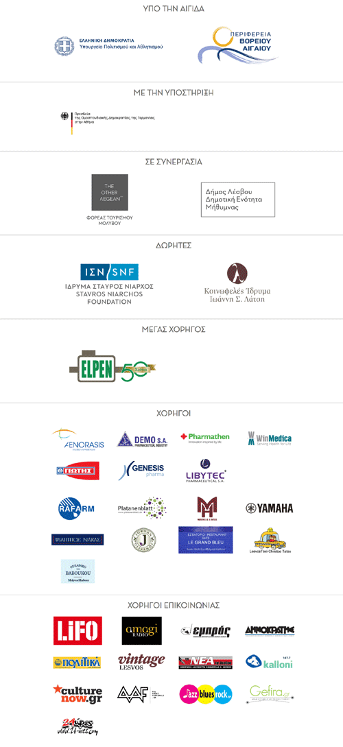 Το Φεστιβάλ τελεί υπό την αιγίδα του Υπουργείου Πολιτισμού και Αθλητισμού και της Περιφέρειας Βορείου Αιγαίου.