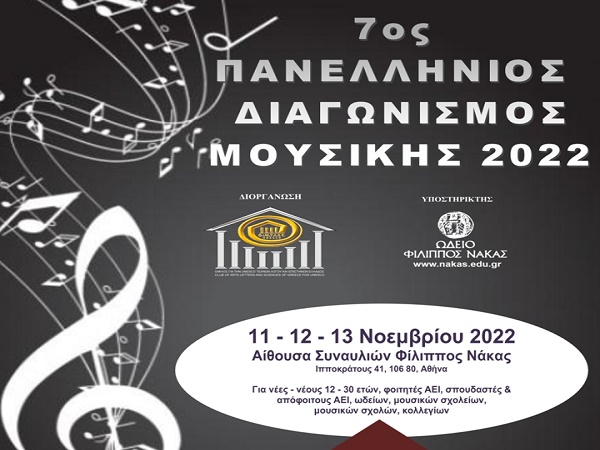 ΠΡΟΚΗΡΥΞΗ 7ου ΠΑΝΕΛΛΗΝΙΟΥ ΔΙΑΓΩΝΙΣΜΟΥ ΜΟΥΣΙΚΗΣ 2022