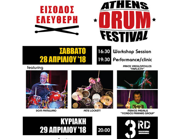 Το Σάββατο 28 και την Κυριακή 29 Απριλίου θα παρελάσουν από τη σκηνή του ΑΘΗΝΑ΄ Live οι : Dom Famularo, Pete Lockett, Πάνος Βασιλόπουλος, Μένιος Πασιαλής, Γιάννης Σταυρόπουλος, Αλέξανδρος Δράκος Κτιστάκης, Καλλίστρατος Δρακόπουλος, Σπύρος Κουδούνης, Μάκης Γιούλης, Πάνος Τσιμισίρης προσφέροντας τη γνώση τους μέσα από τα εκπαιδευτικά σεμινάρια που θα γίνουν αλλά και το δυναμικό τους παίξιμο πότε παίζοντας ως group, πότε solo και πότε 4 μαζί σε μία πραγματική ντραμιστική έκρηξη επί σκηνής.