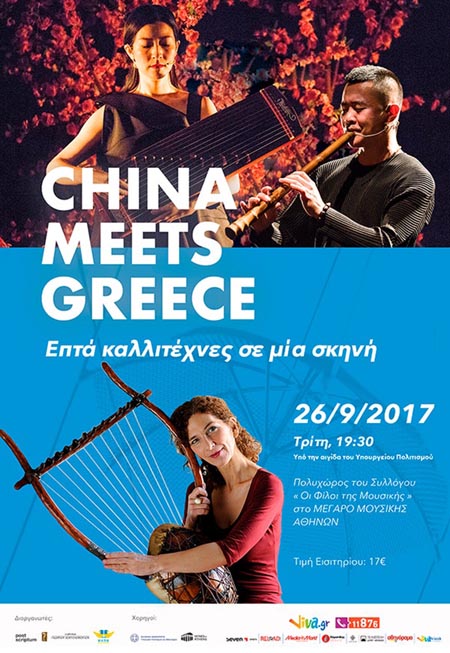 Η μουσική εκδήλωση "China Meets Greece” αποτελεί το κορυφαίο γεγονός του 2017 Meet Greece Music Journey, μία παραγωγή της εταιρίας Post Scriptum σε συνεργασία με το Ίδρυμα Γεωργίου Ζογγολόπουλου και τον οργανισμό Meet Culture με σκοπό την βαθύτερη κατανόηση και γνώση των δύο πολιτισμών, Κίνας και Ελλάδας, μέσα από την τέχνη και τη μουσική. H συναυλία θα πραγματοποιηθεί στις 26/9/2017 στον Πολυχώρο του συλλόγου «Οι φίλοι της Μουσικής», στο Μέγαρο Μουσικής Αθηνών.