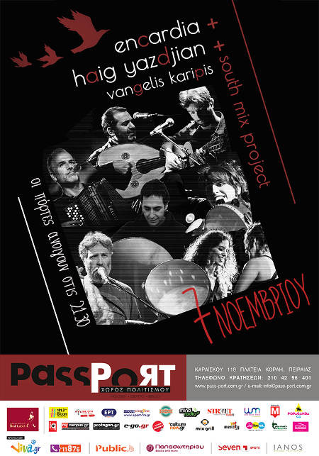 Στα πλαίσια της αέναης αναζήτησης ήχων, φίλων και ρυθμών, οι encardia βρίσκονται στη σκηνή του Passport μαζί με το δεξιοτέχνη ουτίστα και συνθέτη Haig Yazdjian και το διακεκριμένο μελωδικό κρουστό Βαγγέλη Καρίπη, για να ανταλλάξουν μουσικές ιδέες και ήχους από το Νότο ως την Ανατολή της Μεσογείου!
