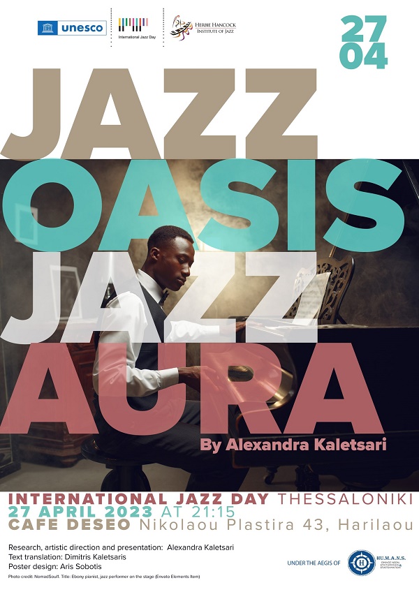 Στα βήματα της ʼνοιξης, το πραγματικό μεταμορφώνεται σε κάτι μαγικό, καθώς το άρωμα της τζαζ θα πλημμυρίσει την πόλη στο πλαίσιο του εορτασμού της Παγκόσμιας Ημέρας Τζαζ. Φέτος, η εκπρόσωπος της International Jazz Day Βορείου Ελλάδος Αλεξάνδρα Καλέτσαρη προσκαλεί το κοινό της Θεσσαλονίκης σε μια ζωντανή αλληλεπιδραστική εμπειρία την Πέμπτη 27 Απριλίου, ώρα 21.15 στον πολυχώρο του café Deseo, Πλαστήρα 43 & Αναξιμάνδρου.