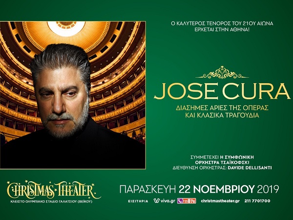 Ο Χοσέ Κούρα επιστρέφει στην Αθήνα για μια Χριστουγεννιάτικη συναυλία στο Christmas Theater την Παρασκευή 22 Νοεμβρίου στις 20.30. Το πρόγραμμα περιλαμβάνει έργα των Μότσαρτ, Βέρντι, Μπιζέ, Πουτσίνι κ.α. Μαζί του συμπράττει η Συμφωνική ορχήστρα Τσαϊκόφσκι υπό την διεύθυνση του Δαυίδ Ντελισάντι.