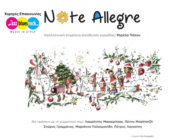 Η χορωδία «Note Allegre» κάνει τα Χριστούγεννα ακόμη πιο μαγικά! Μετρώντας αντίστροφα για τις γιορτές, η χορωδία «Note Allegre» έρχεται στον ΙΑΝΟ, για να ακολουθήσουμε το μουσικό χριστουγεννιάτικο ταξίδι της, να ανταλλάξουμε μελωδικές ευχές και να καλωσορίσουμε το πνεύμα των Χριστουγέννων με τα πιο όμορφα τραγούδια. Μέσα από τη μουσική, την έκφραση συναισθημάτων και το παιχνίδι, η χορωδία εμπνέεται δημιουργικά από τα μέλη της, τους εμπιστεύεται τα πιο όμορφα τραγούδια και τους βοηθά να ανακαλύψουν το μαγικό κόσμο της χορωδίας και ενδεχομένως μια ιδιαίτερη κλίση στη μουσική. Με σύνθημα «τραγουδάμε παρέα και μαθαίνουμε διασκεδάζοντας» και με την πεποίθηση ότι κάθε φορά που τα παιδιά τραγουδούν ο κόσμος γίνεται πιο χαρούμενος, η χορωδία πλαισιώνεται από μικρά και μεγάλα παιδιά που αγαπούν το τραγούδι και επιθυμούν να εκφραστούν καλλιτεχνικά αλλά και να αποκτήσουν ξεχωριστές εμπειρίες μέσα από τη συμμετοχή σε συναυλίες και τη γνωριμία με καταξιωμένους καλλιτέχνες.