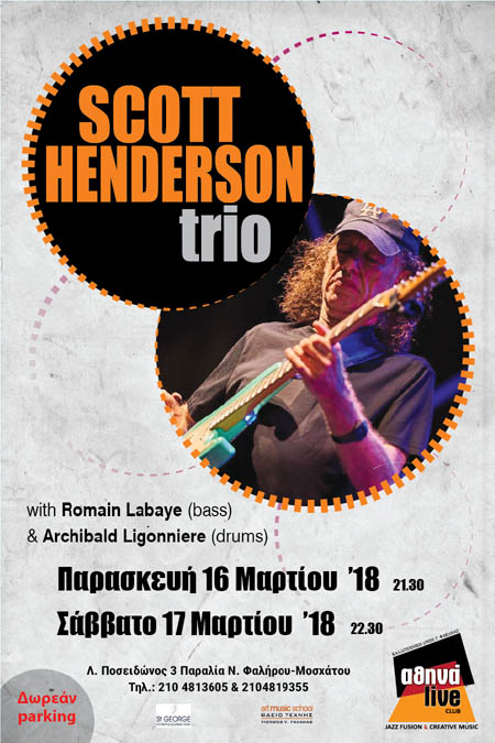 Φυσικά οι δυο μουσικοί που θα τον συνοδεύουν, ο Romain Labaye στο ηλεκτρικό μπάσο και ο Archibald Ligonniere στα drums γνωρίζουν πολύ καλά τα μυστικά της δομής του παιξίματος του Scott Henderson και τον υποστηρίζουν με τρόπο άψογο και πλήρη για το είδος.