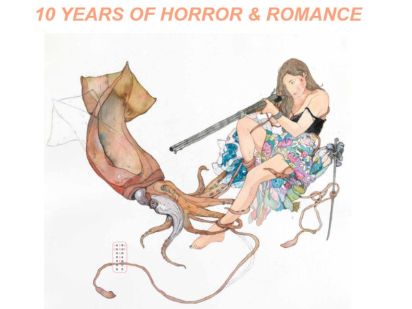 "Από την ημέρα κυκλοφορίας της μουσικής συλλογής Horror & Romance On Another Planet που συνόδευε την ομώνυμη εικαστική μου έκθεση, το μυαλό μου έτρεχε σε μελλοντικές επετειακές ιδέες και διοργανώσεις. Είναι κάτι που μου συμβαίνει συχνά· κάνω μακροπρόθεσμα σχέδια πριν καν ολοκληρώσω αυτό για το οποίο δουλεύω καιρό. Δεν μπορούσα βέβαια τότε να διανοηθώ ότι τα δέκα χρόνια θα περνούσαν τόσο γρήγορα, ούτε ασφαλώς ότι το 2020 η ανθρωπότητα θα συγκλονιζόταν από μια ανεξέλεγκτη πανδημία με το όνομα COVID-19. Το πολύ πολύ, σκεφτόμουν, να έχω δύο παιδιά. «And nothing has changed, Everything has changed» τραγουδούσε στο Sunday ο David Bowie, ο οποίος έφυγε μέσα σ’ αυτά τα 10 χρόνια που μεσολάβησαν. Από πολύ νωρίς λοιπόν σκεφτόμουν να επιλέξω 3-4 τραγούδια από τα συνολικά 18 της πρωτότυπης συλλογής, να ζητήσω από τους μουσικούς να τα ξαναδουλέψουν, και να κυκλοφορήσει ένα επετειακό EP βινύλιο για τα 10 χρόνια Horror & Romance. Το ίδιο ήθελα και για το εξώφυλλο, να του κάνω δηλαδή κι εγώ ένα remix, επιχειρώντας μια νέα προσέγγιση του ίδιου θέματος – και να πρωταγωνιστεί σ’ αυτό μία άλλη ηρωίδα, που αντί για χταπόδι θα έρχεται αντιμέτωπη με ένα καλαμάρι. Τόσο απλά, αλλά εκ των πραγμάτων με διαφορετικό φορτίο. Η βασική δυσκολία του εγχειρήματος ήταν να αποφασίσω ποια τραγούδια θα επιλεγούν γι’ αυτόν τον σκοπό, δεδομένου ότι και τα 18 της προηγούμενης κυκλοφορίας έχουν ιδιαίτερη αξία για μένα. Τα αγαπώ όλα ανεξαιρέτως, κι όσες φορές κι αν τα ακούσω με συγκινούν και τιμούν εμένα προσωπικά και τις ζωγραφιές μου.