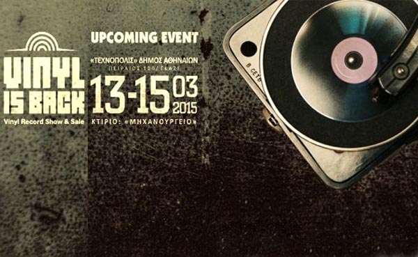 Το «Vinyl is back», η κορυφαία διοργάνωση για το βινύλιο, έχοντας πλέον καταξιωθεί ως το σημείο συνάντησης όσων αγαπούν τη μουσική και τον ιδιαίτερο ήχο των δίσκων βινυλίου, επανέρχεται για μια ακόμη φορά στην «Τεχνόπολις» του Δήμου Αθηναίων, (Πειραιώς 100, Γκάζι) το τριήμερο 13, 14 και Μαρτίου 2015 !