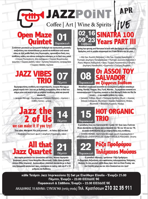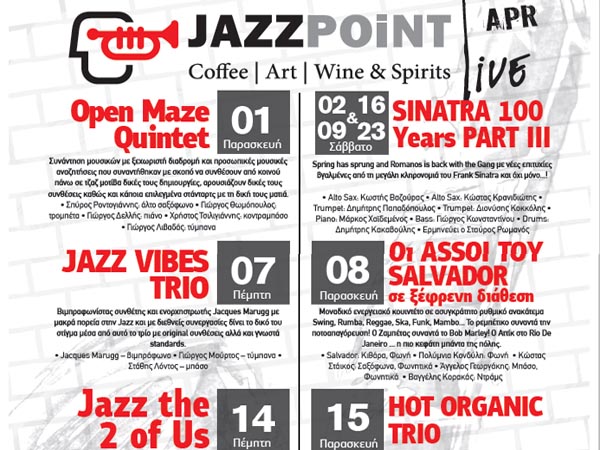 Μόνο στο JazzPoint κάθε Σάββατο από 2 έως 23 Απριλίου.