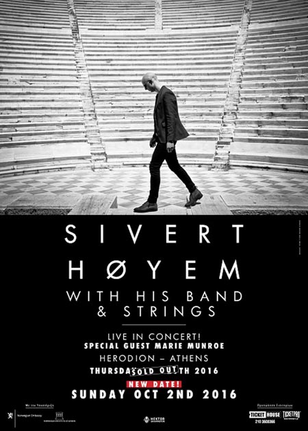 Στις 29 Σεπτεμβρίου αλλά και στις 2 Οκτωβρίου, ο Sivert Høyem θα πραγματοποιήσει δύο μοναδικές παράστασεις στο Ωδείο Ηρώδου Αττικού.